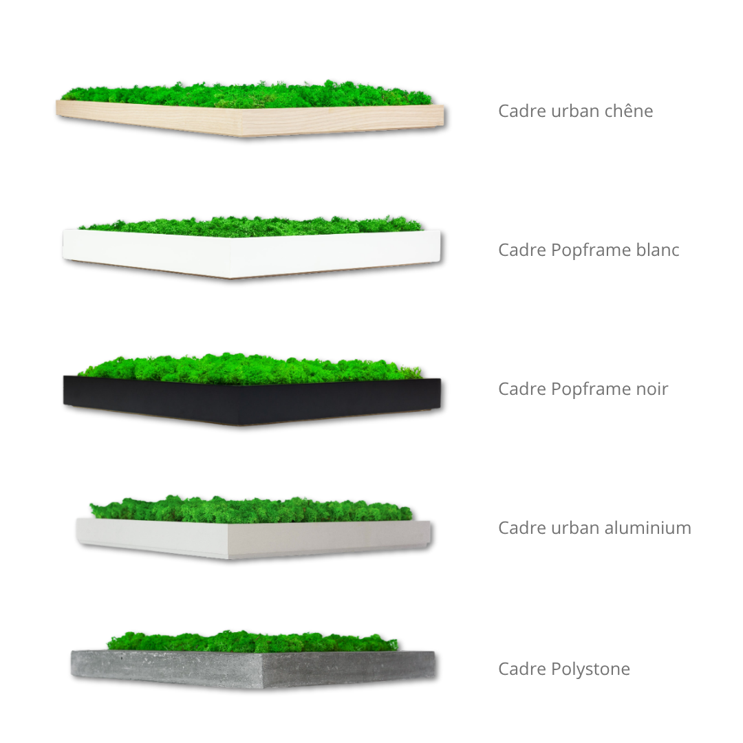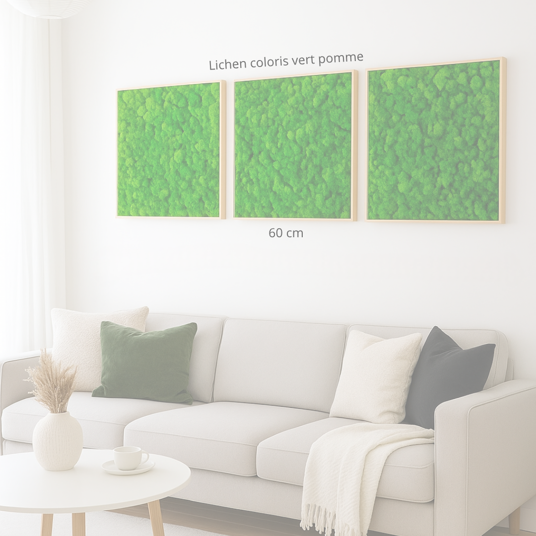 Le lichen vous immergera dans la canopée d’une forêt amazonienne et vous garantira un visuel original et de caractère. Les lichens scandinaves, cultivés dans les forêts nordiques, sont coupés, adaptés et assemblés en atelier par nos mains d'expert.