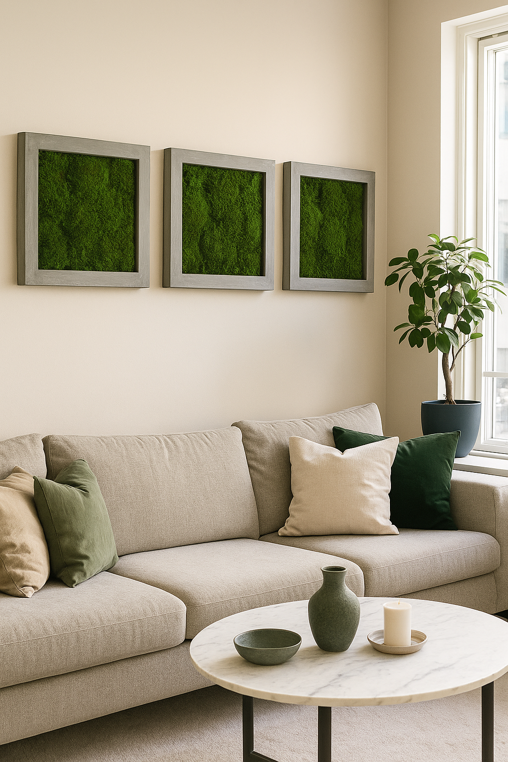 A l’installation, un parfum de sous-bois émane des mousses. Il s’atténue au fil du temps. Les éventuelles nuances de couleurs sont naturelles.