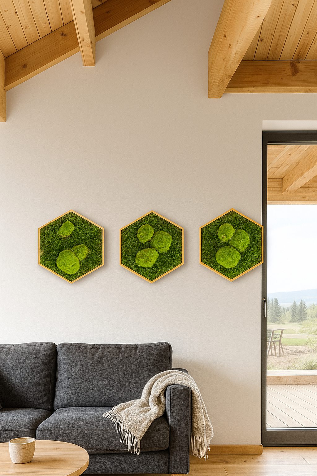 Tableau Mosaïk bois hexagonal – Mousse stabilisée en relief