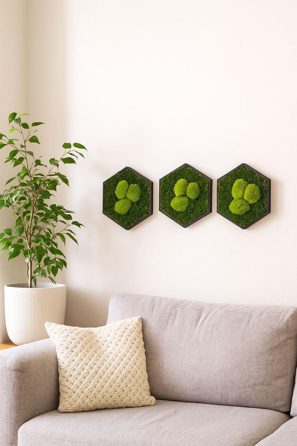 A l’installation, un parfum de sous-bois émane des mousses. Il s’atténue au fil du temps. Les éventuelles nuances de couleurs sont naturelles.