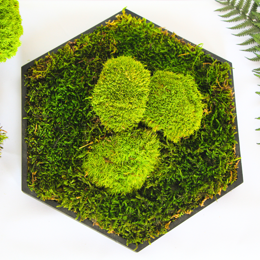 Cette réalisation est composée de mousse plate et de mousse boule. Synonyme d’élégance et de simplicité, elles ont un toucher doux et naturel à la fois. Essentiellement cultivées en Europe, elles sont triées, sélectionnées puis assemblées en atelier par nos mains d'expert.
