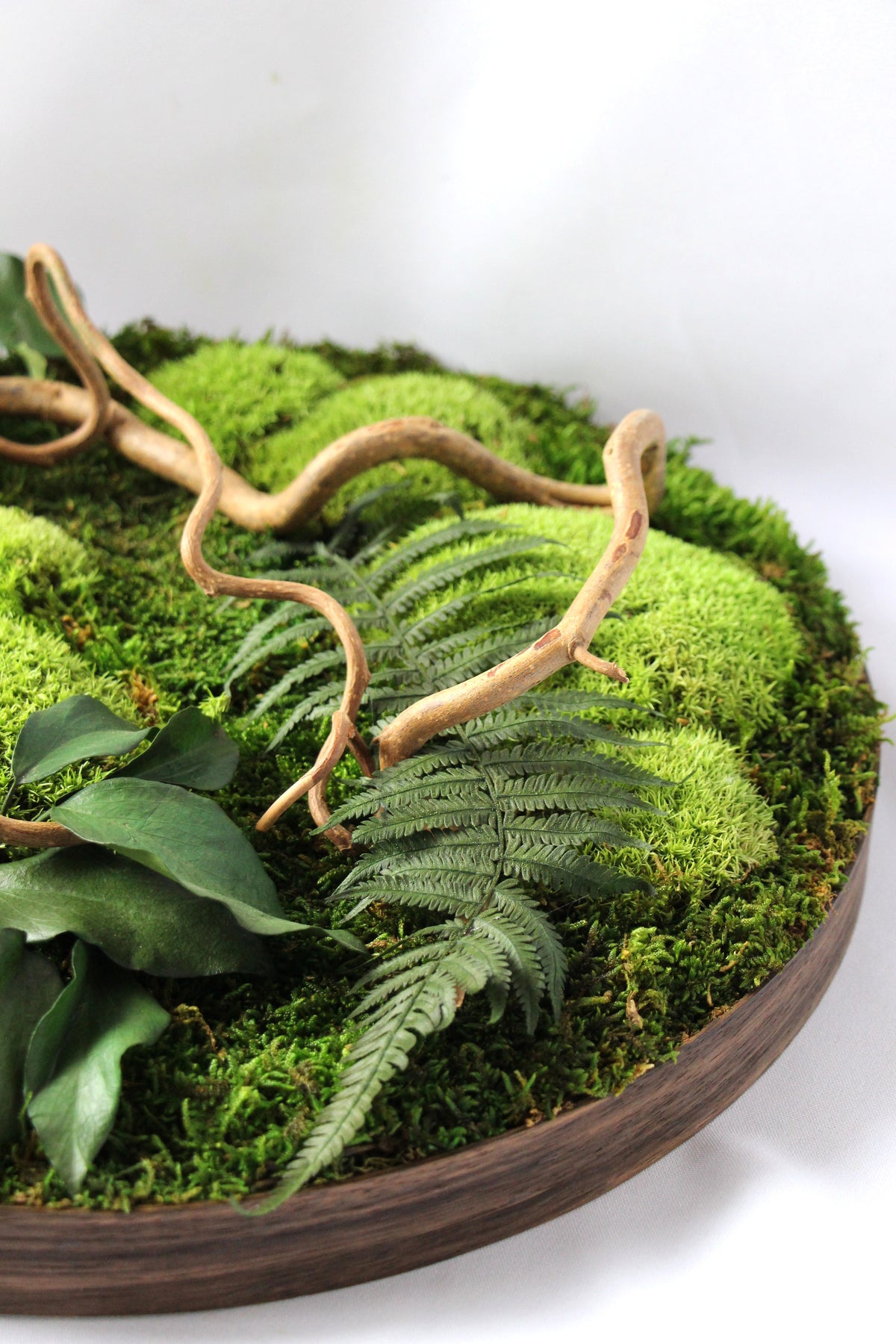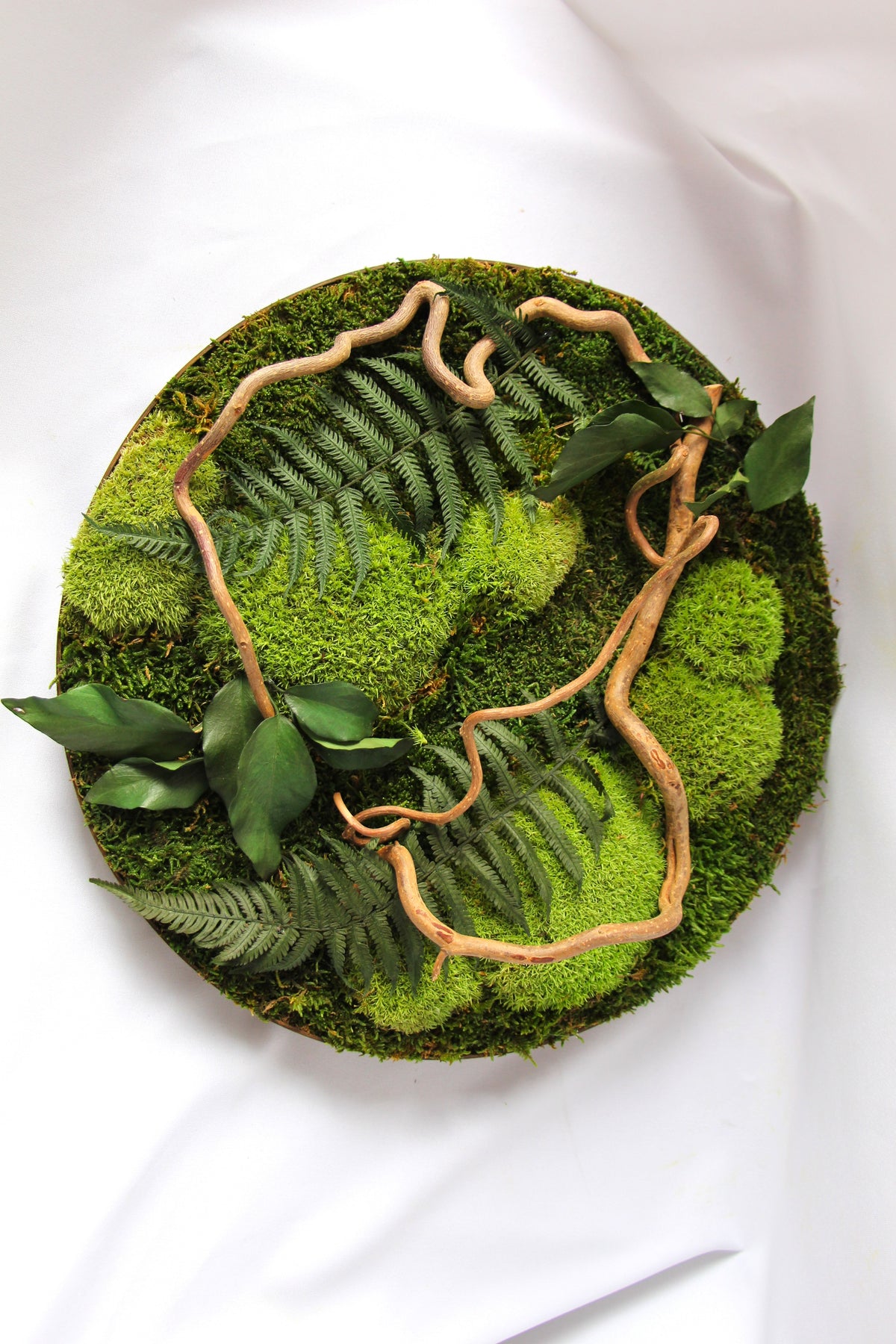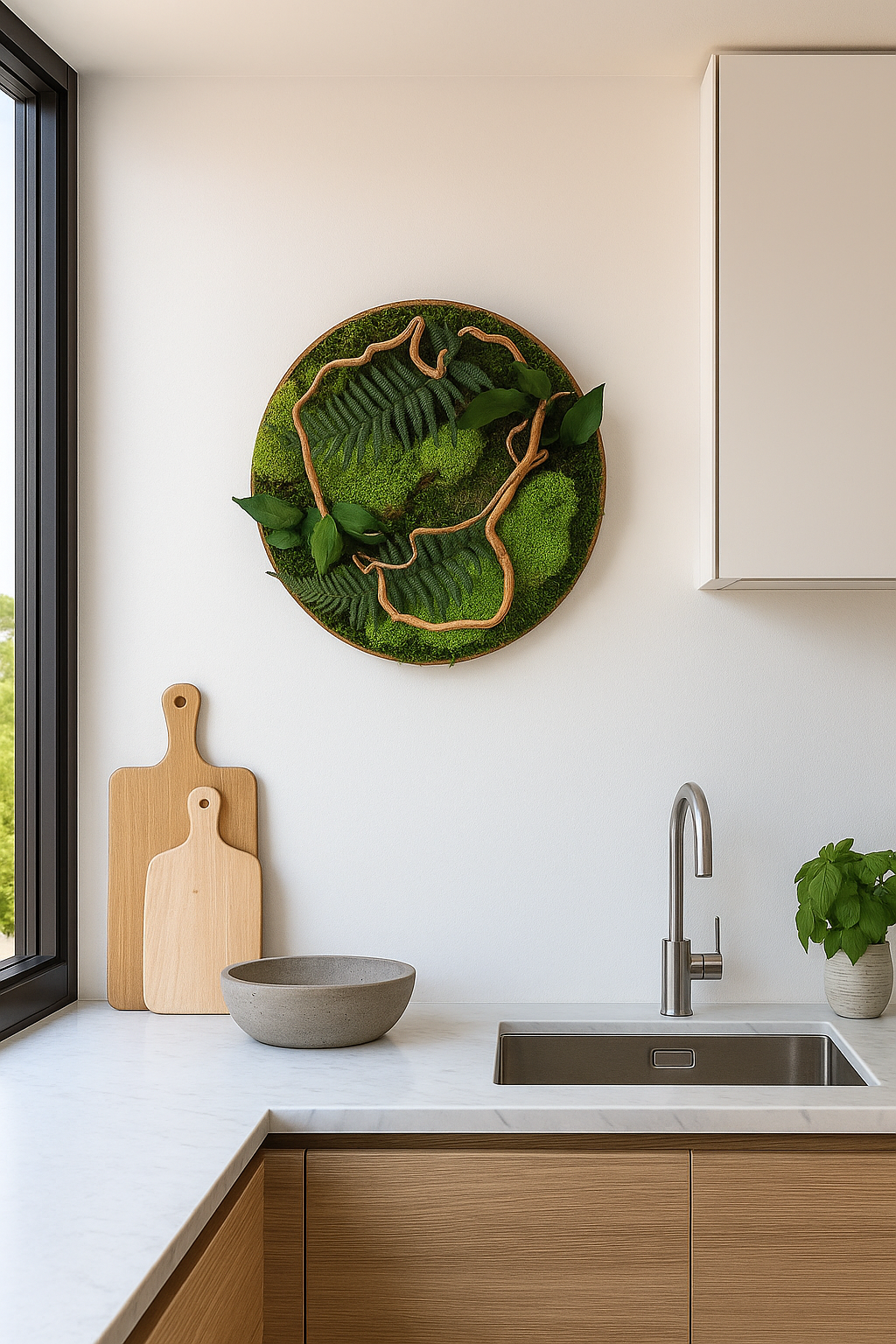 Apportez une touche végétale unique à votre intérieur avec ce tableau mural rond en bois.